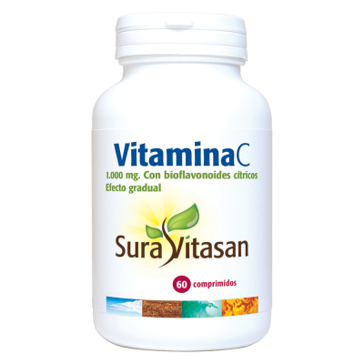Vitamina C da Sura Vitasan é um suplemento alimentar que contém 1.000 mg de vitamina C, enriquecido com bioflavonoides e escaramujo, compostos que aumentam a absorção e a biodisponibilidade da vitamina C. Esta fórmula possui um efeito gradual, permitindo que a ação no organismo seja distribuída ao longo de 4 a 8 horas, dependendo de cada indivíduo.